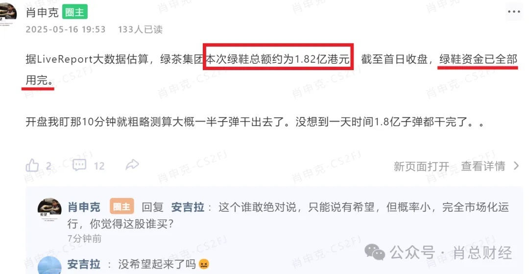 Last night’s trading report estimated the greenshoe situation—looks like it’s all used up. Normally, the stabilizer has 30 days to exercise the greenshoe, but CMB wrapped it up on the first day. They really tried their best, but with retail investors dumping 600 million worth of shares, there was just no way to hold it up. That’s why, after watching the market for just 10 minutes this morning and seeing over half the greenshoe already used, I immediately wrote this post to share my thoughts and started offloading my position.