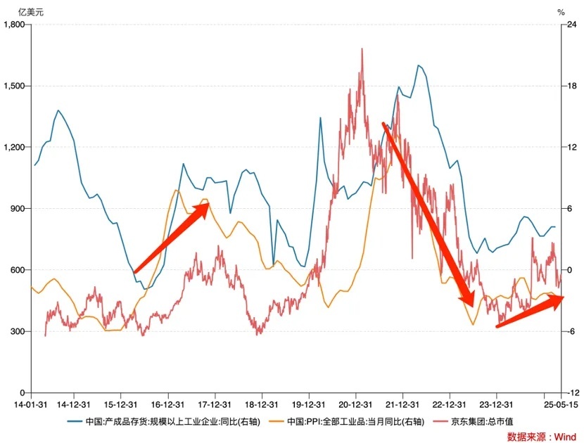 After 2022, China entered a prolonged inventory reduction cycle. Post-2023, macro indicators like PPI hovered below zero, reflecting weak demand—a tough environment for JD.com.
