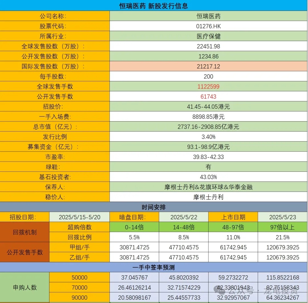 Assuming Hengrui Pharma adopts an average allocation system, the lottery rate for one lot would be around 15%, and applying for 30 lots guarantees one allocation.