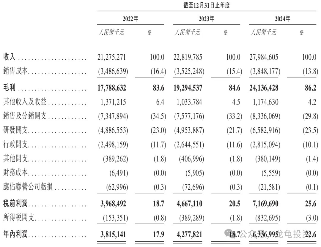 Gross Profit:2022 gross profit was RMB 17.789 billion, 2023 gross profit was RMB 19.295 billion, and 2024 gross profit was RMB 24.136 billion;