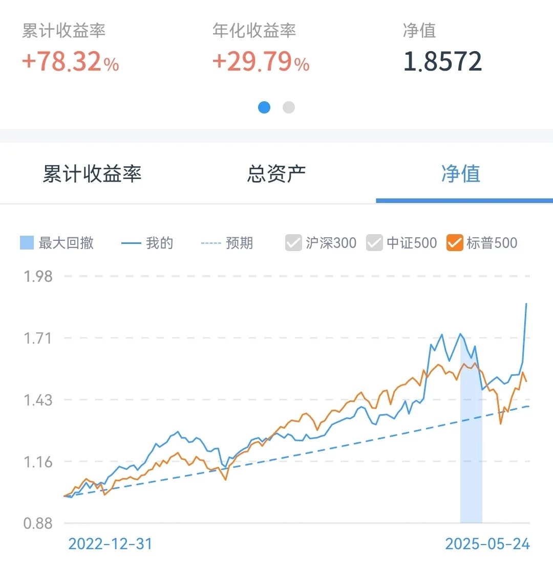 In 2025, the S&P 500 index fell by 1.34%, and my actual portfolio value rose by 15.93% (starting the year with a net value of 1.60, this week's net value is 1.86).