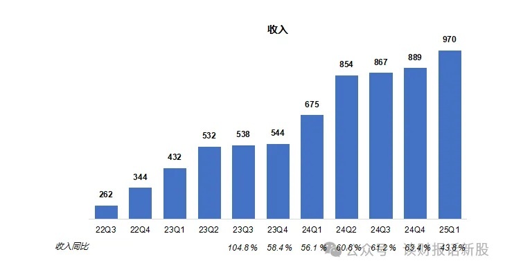 Rapid revenue growth:Total revenue reached 970 million RMB, up 43.8% YoY. This growth rate significantly exceeds the industry's good performance benchmark (around 20%).
