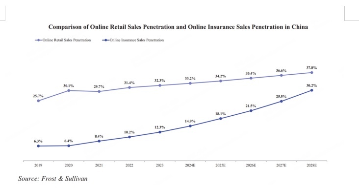 As Chinese consumers become more accepting of internet insurance, penetration is expected to reach 30.2% by 2028, with internet insurance likely to exceed 1 trillion RMB in the next five years.