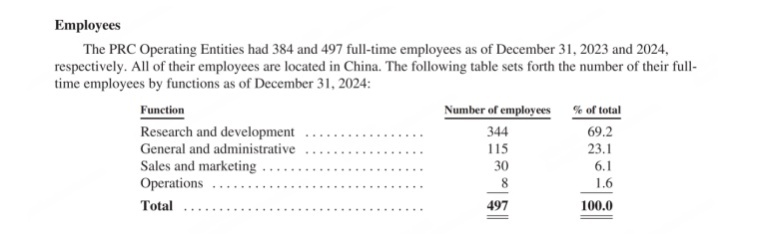 Fewer than 500 employees, with R&D staff accounting for nearly 70% and AI specialists over 10%. Such ratios are very high among tech companies, indicating substantial investment in R&D and innovation.