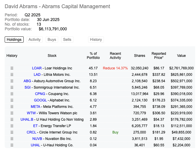 Tesla OptionDavid Abrams just updated his $6.1 billion investment portfolio