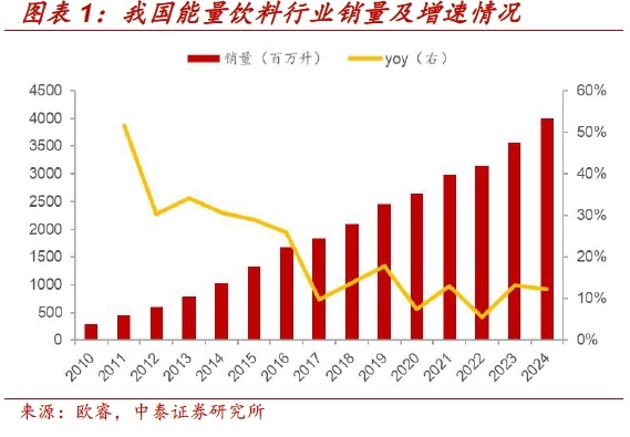 In terms of sales, China's energy drink industry has maintained rapid growth for years, with a 10.9% CAGR from 2020 to 2024. In 2024, sales reached nearly 4 billion liters.