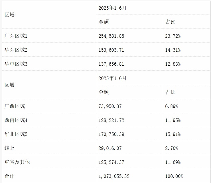 Regional Revenue: Guangdong remains the stronghold, with rapid growth in national markets. In the first half of 2025, by region, Guangdong/North China/East China/Central China contributed 2.546/1.708/1.536/1.377 billion yuan, with year-on-year increases of 20.61%/73.03%/32.62%/28.91%, accounting for 23.72%/15.91%/14.31%/12.83% of total revenue. Among regions outside Guangdong, North China, East China, and Central China lead in revenue scale, with North China's growth rate far exceeding the national average, becoming the second-largest sales region after Guangdong, demonstrating the significant effect of the company's nationalization strategy.