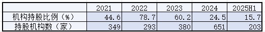Public information shows that since its IPO, Dongpeng Beverage has distributed over 5.3 billion yuan in dividends. In its 2025 interim report, the company proposed an interim dividend of 1.3 billion yuan, enhancing shareholder returns. With the Lin Muqin family holding over 60%, they would receive 780 million yuan from this dividend. Despite such large payouts, Dongpeng has struggled to retain institutional investors. From 2021 to 2024 and the first half of 2025, the number of institutional shareholders was 349/293/380/651/203, with ownership at 44.6%/78.7%/60.2%/24.5%/15.7%.