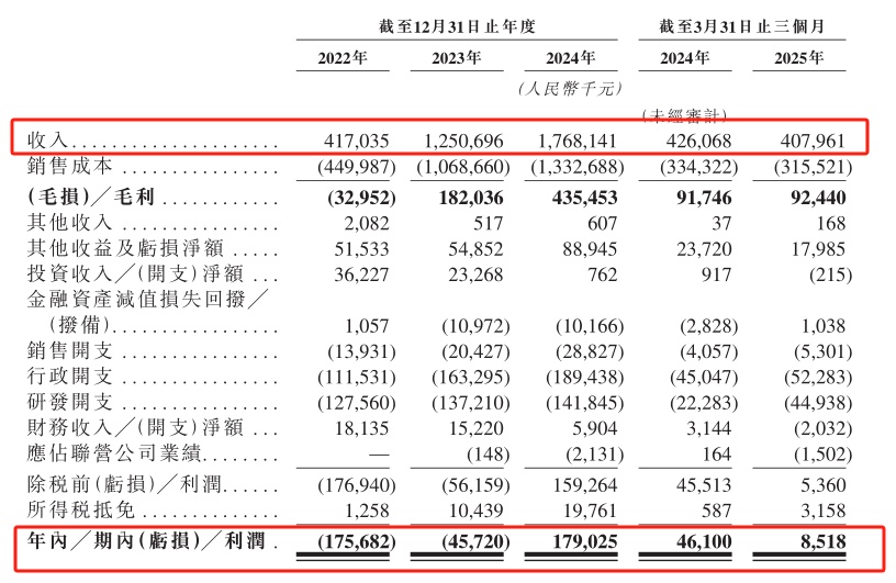 The company's revenues from 2022 to 2024 were HK$417 million, HK$1.251 billion, and HK$1.768 billion, respectively, with a year-on-year growth of 41.37% in 2024; Net profits from 2022 to 2024 were -HK$176 million, -HK$45.72 million, and HK$179 million, respectively, with a year-on-year growth of 491.57% in 2024. The performance growth is very rapid.