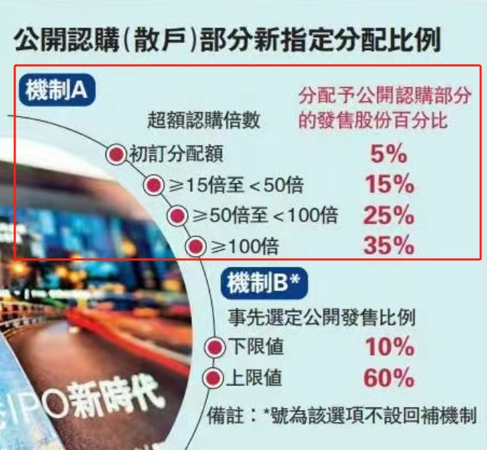 This issuance adopts Mechanism A under the new IPO rules of the Hong Kong stock market. The initial public offering share is 5%. If the subscription multiple exceeds 15 times, it will be scaled up to 15%; if it exceeds 50 times, it will be scaled up to 25%; if it exceeds 100 times, it will be scaled up to 35%. The maximum scale-up is 35%.