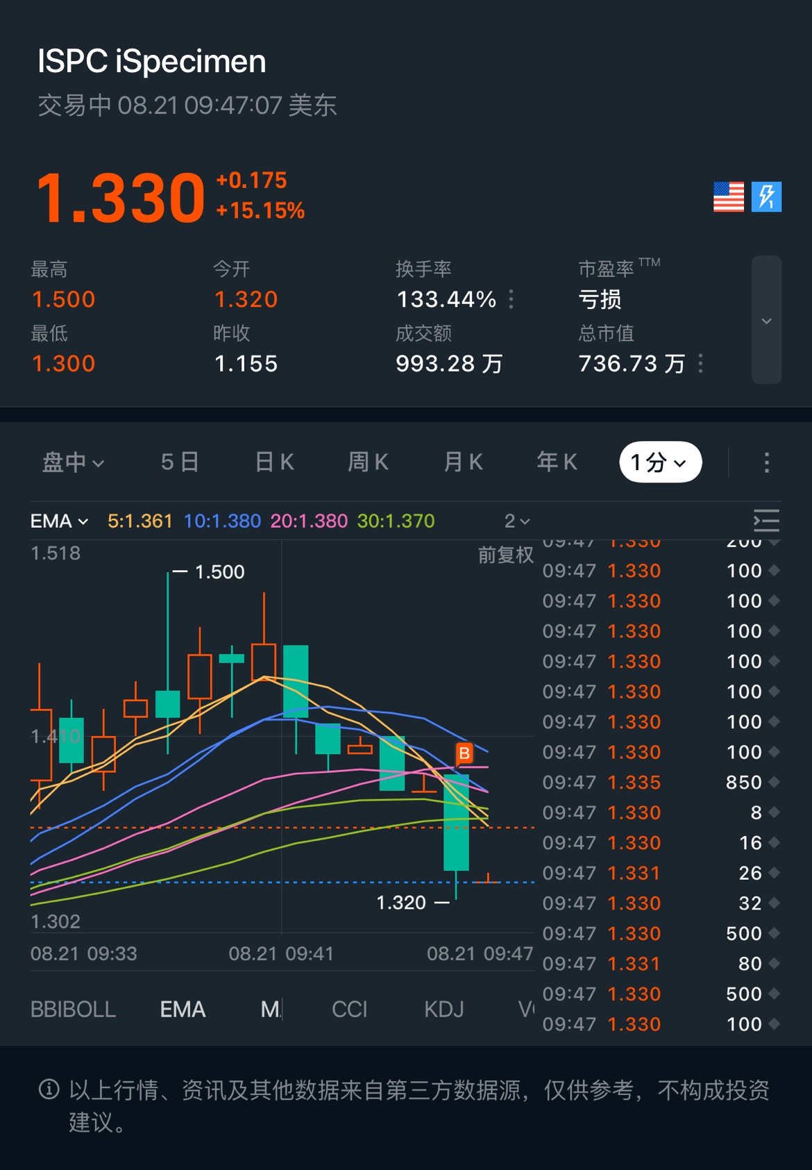 Rate Of Return$iSpecimen(ISPC.US) saw 1.8