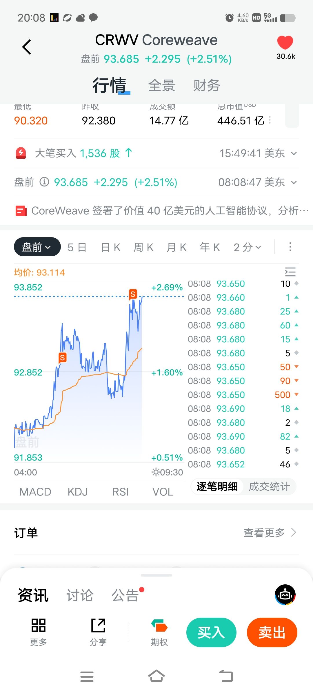 $Coreweave(CRWV.US) Pre-market champion ends underwater