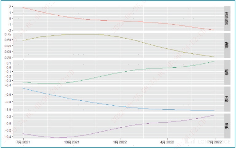 货币维度:货币与信贷类似,在跨周期调节的政策指引下,自 2021 年 10 月以来持续上行,二季度延续上行趋势。基于五个维度的经济指标状态识别,我们模型认为当前中国经济处于衰退末期,迈向复苏初期的阶段。