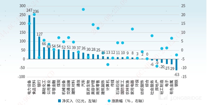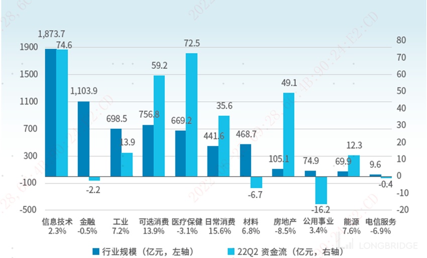 2022 年二季度陆股通资金净流入 1072.4 亿元人民币,行业分布上看主要流入方向为电力设备、食品饮料、银行等行业,钢铁、有色金属和电子等行业二季度资金大幅流出。