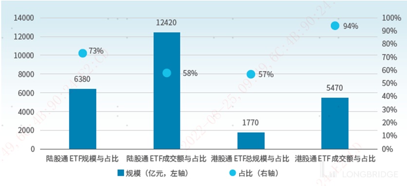 陆股通/港股通 ETF 规模、过去三个月总成交额及占比