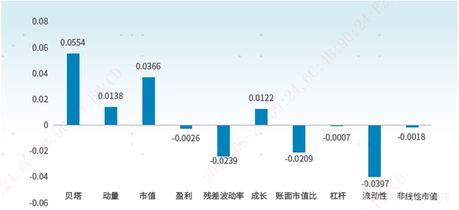 2022 年 Q2,中国市场的贝塔因子和市值因子表现较好,对应的申万大盘指数收益率为 7.11%,明显跑赢同期中小盘指数收益率(4.51%)。从行业分布来看,大市值风格暴露较高的消费者服务、汽车、食品饮料行业在 Q2 也获得了全市场前三的收益率,分别为 25.3%、24.9%、21.2%。