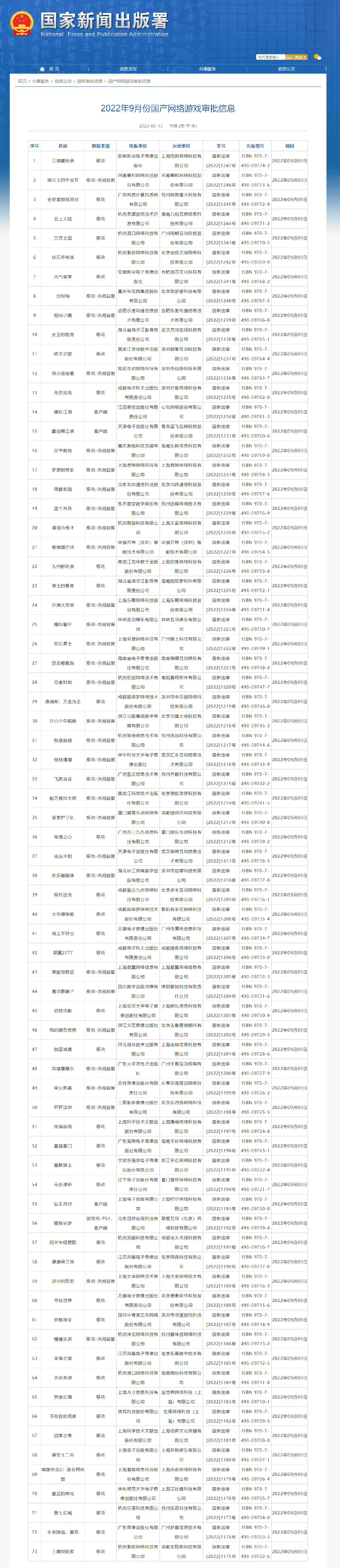 Likes Received9 月国产游戏版号发了 73 款,其中上市公司中,$TENCENT(00700.HK) 手游《健康保卫战》(间接全资持股公司获得)、$NetEase(NTES.US) 的手游《全明星街球派对》、$XD INC(02400.HK) 的端游《模拟江湖》、$ZQGAME(300052.SZ) 负责发行的手游《异星指令》(凉屋游戏开发)、$CMGE(00302.HK) 的《镇魂街:天生为王》,以及$CHINA MOBILE(00941.HK) 旗下子公司咪咕游戏的手游《模拟餐厅》获得版号。