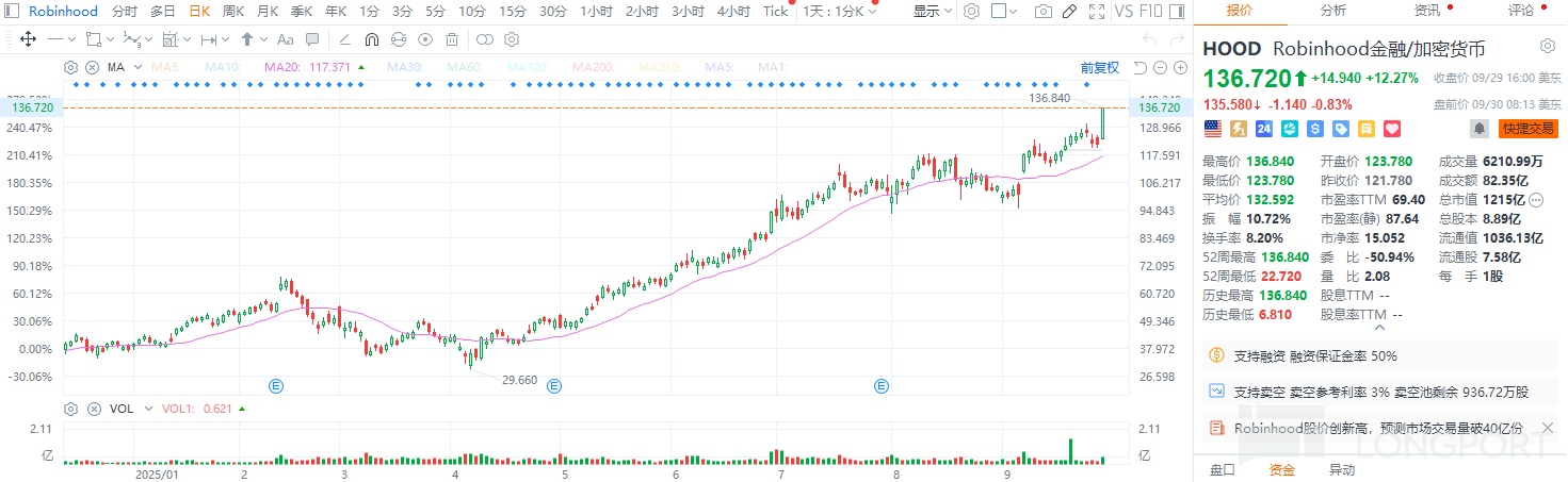 Robinhood really nails retail speculative sentiment—options, crypto, betting. The expansion into this sector has significantly improved fundamentals, moving beyond pure finance into lifestyle integration, which is very effective for user base growth. With the stock hitting new highs, I'm still planning to increase my position.