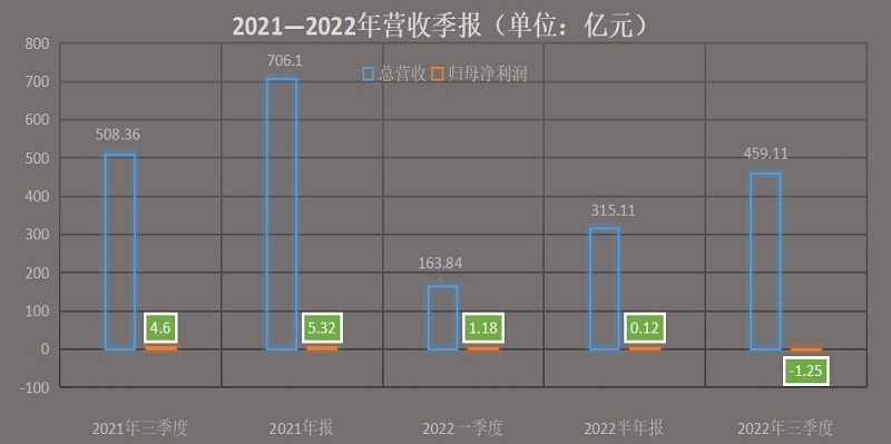 但如果从财报上来看又是另一番景象。2022 年冠捷科技上半年营收约 315.11 亿元,同比减少 4.42%;归母净利润 1185 万元,同比减少 97.09%。而到了第三季度情况并没有好转。前三季度营收 459.11 亿元,同比下降 9.69%;归母净利润亏损 1.25 亿元。