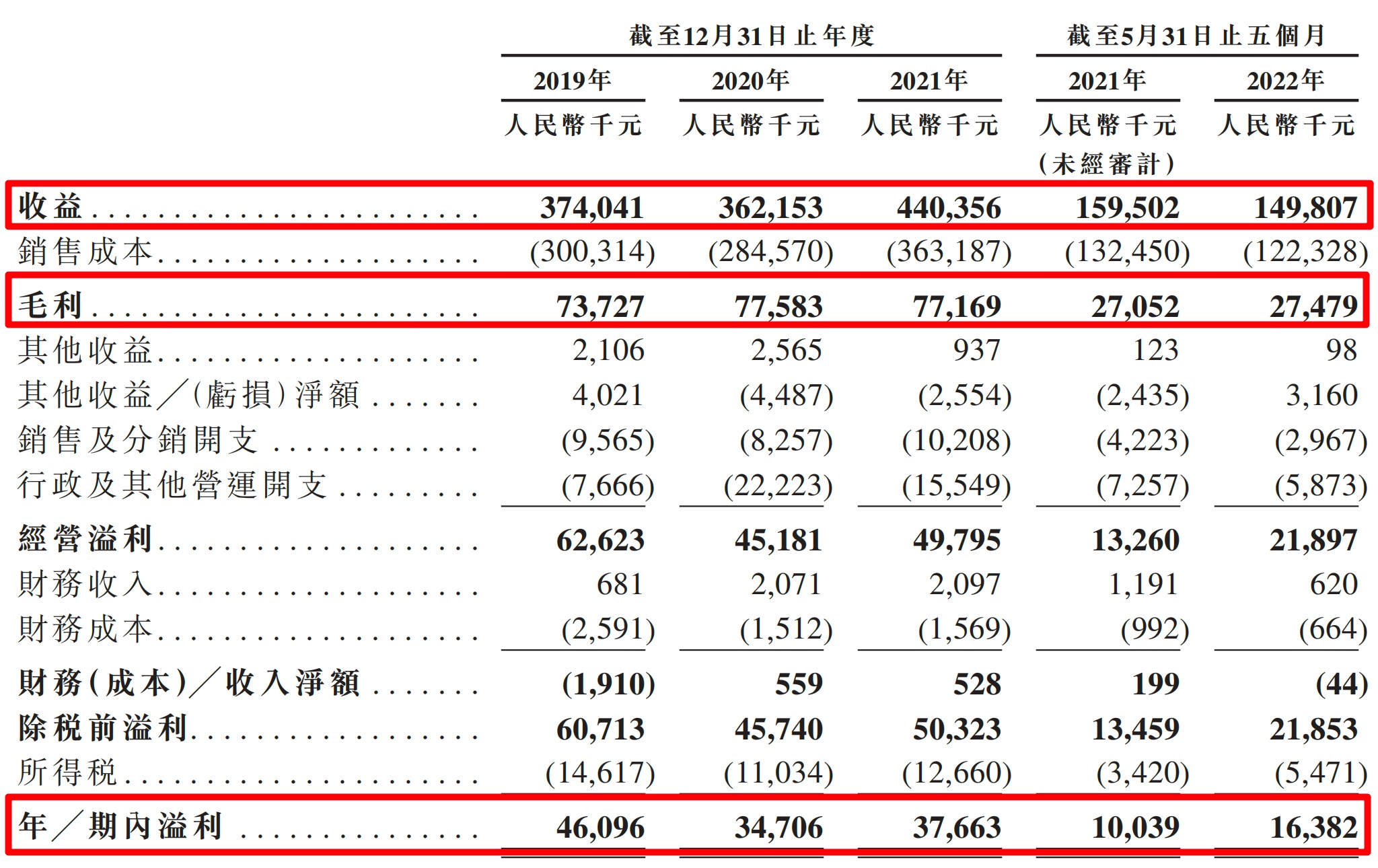 根据公司招股书,2019 年、2020 年、2021 年以及截止 2022 年公司分别实现营收 3.74 亿元、3.62 亿元、4.40 亿元、1.50 亿元,复合年增长率只有 8.5%,2019 年至 2020 年公司营收减少主要由于疫情影响造成海外市场受损。期间毛利润分别为 7372.7 万元、7758.3 万元、7716.9 万元和 2747.9 万元,对应毛利率分别为 19.7%、21.4%、17.5% 和 18.3%。