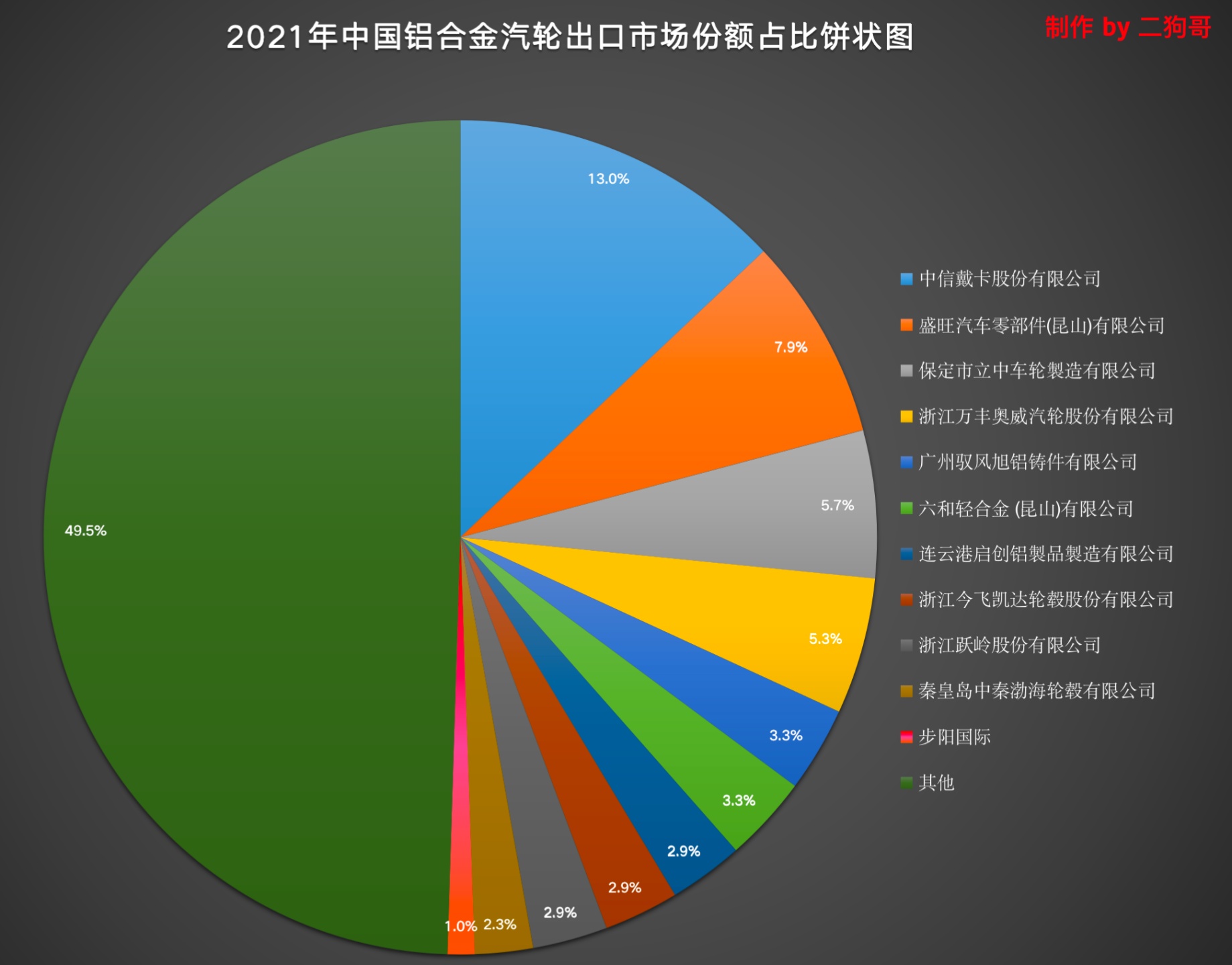 (2)按国内市场份额计,公司在 2021 年国内销量为 40 万只,市场份额占比为 0.4%,其中第一名销量为 5020 万只,市场份额为 13.3%,为中信戴卡股份有限公司。