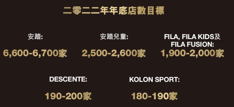 而安踏作为老牌国货,已深耕线下渠道二十余年。安踏在 2022 年半年报中表示,目前主品牌安踏在全球的门店数量达 6660 家,安踏儿童店门店数量为 2563 家;FILA 在中国大陆、香港、澳门以及新加坡的门店总数(含 FILAKIDs 和 FILA Fusion)达 2021 家;迪桑特及可隆则分别有一百余家。