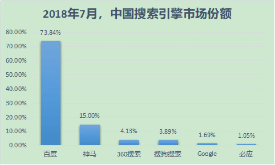 就在外界期待搜索市场格局转变,能有新故事的时候,360 搜索因为几度更名、业务重心也屡次转变,最终一败涂地。根据 StatCounter Global Stats 数据,2018 年 7 月,360 搜索仅占中国搜索引擎市场 4.13% 的份额,与百度相差悬殊,甚至不及阿里和 UC 优视联合推出的中文移动网络搜索引擎 “神马”,位列第三。