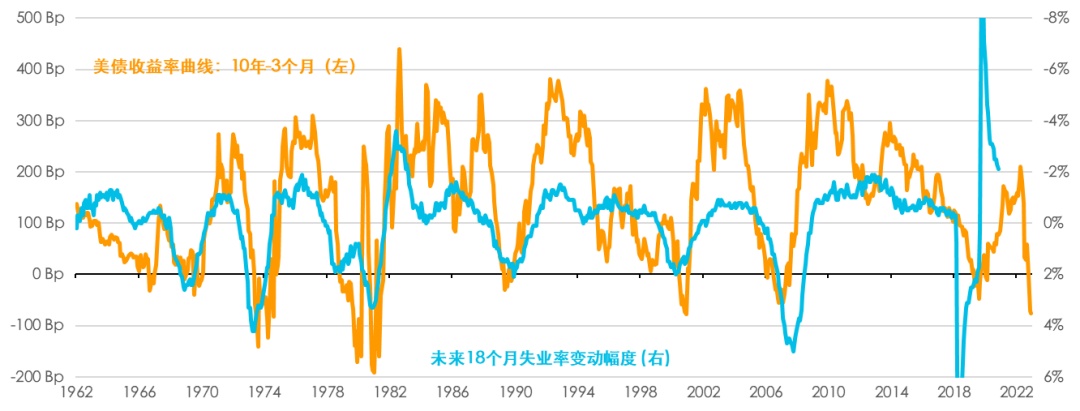 尽管失业率短期内可能保持稳定,但其坚挺很难保持一整年。美债收益率曲线是预测美国经济形势最好的领先指标之一。当前曲线的深度倒挂预示着失业率在未来 18 个月将面临明显的上行压力。