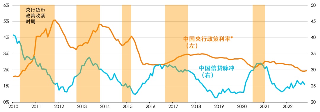 数据来源:Wind、易方达香港。数据更新截止至 2022 年 12 月 30 日。注: 中国央行政策利率在 2016 年后采用 7 天逆回购利率,在 2016 年以前我们用银行间 7 天回购利率的 6 个月移动平均作为近似。
