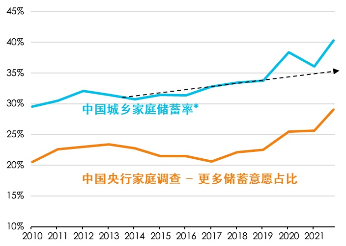 数据来源:Wind、易方达香港。数据更新截止至 2022 年 12 月 30 日。注: 家庭储蓄率 = 100% - 城乡家庭消费性支出/城乡家庭可支配收入。