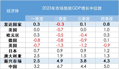 2023 年市场预期全球经济增长将继续放缓,整体经济增速将显着低于 2010-2019 年疫情前的平均水平,衰退风险也在增加。市场预期欧洲率先步入衰退,而美国也将步入浅衰退。中国在逐渐放松防疫政策及支持房地产措施陆续出台后经济将有所反弹,中美经济周期再次错位。