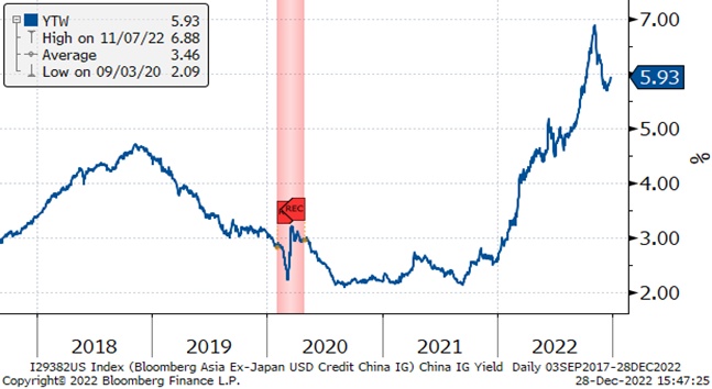 中美利差 2022 年开始倒挂,这在近年来是较为罕见的。优质国企更愿意在境内发债而非发行美元债。有限的供应有利于优质中资美元债的整体表现。
