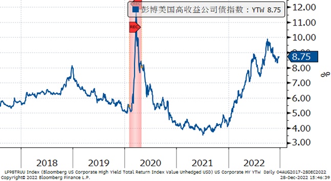 美国高收益收益率也处于较高位置