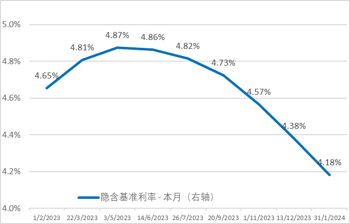 美债利率期货隐含至 2024 年美联储利率变动