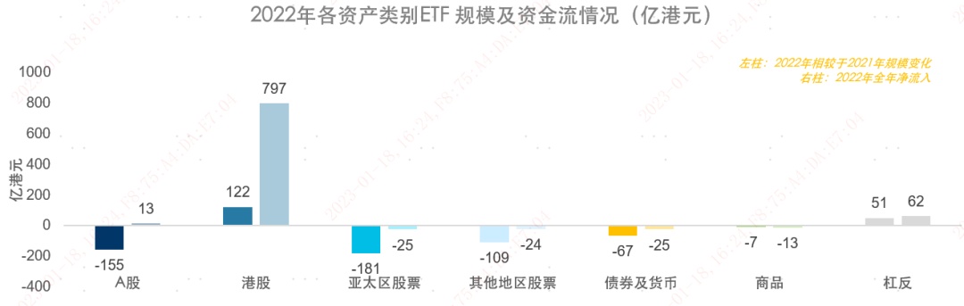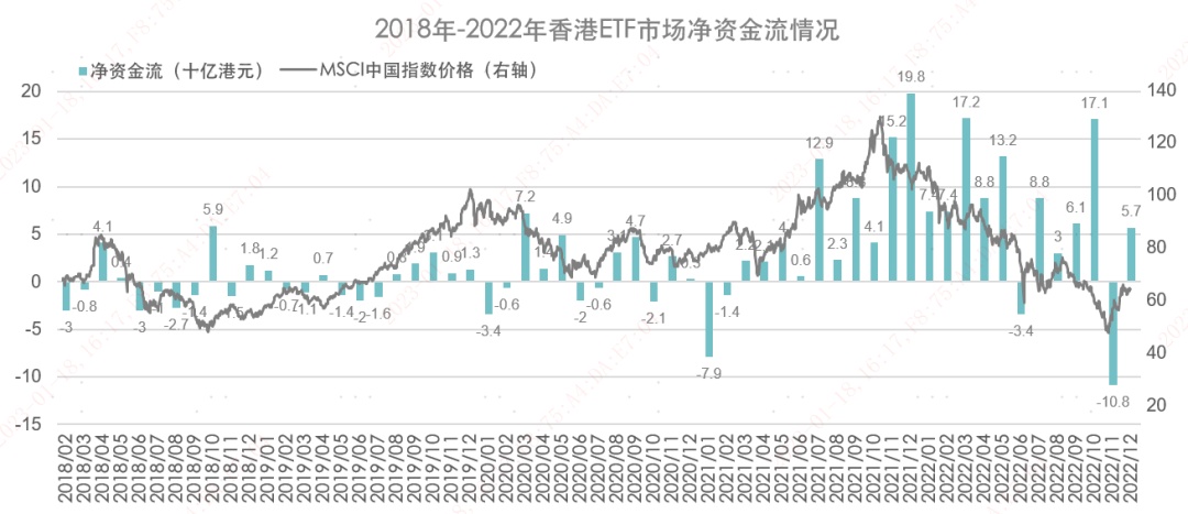 - 2022 年香港 ETF 市场净流入几乎全部来源于港股类 ETF。