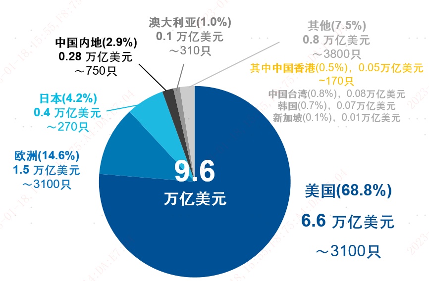 据易方达香港统计, 2022 年全球 ETF 市场规模情况如下:美国最多,发行约 3100 只,占全球规模 68.8%;其次为欧洲,发行约 3100 只,占全球规模 14.6%;而中国香港发行约 170 只,占全球规模约 0.5%。香港市场最大的 ETF 管理人是恒生资管。