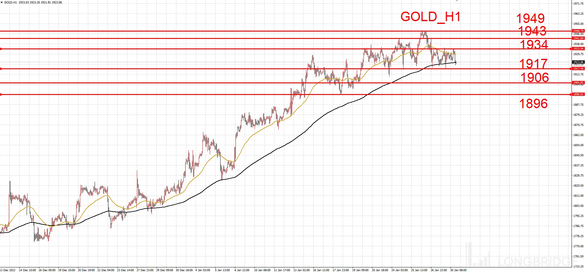 下方支撑: 1917 / 1906 / 1896 美元/盎司