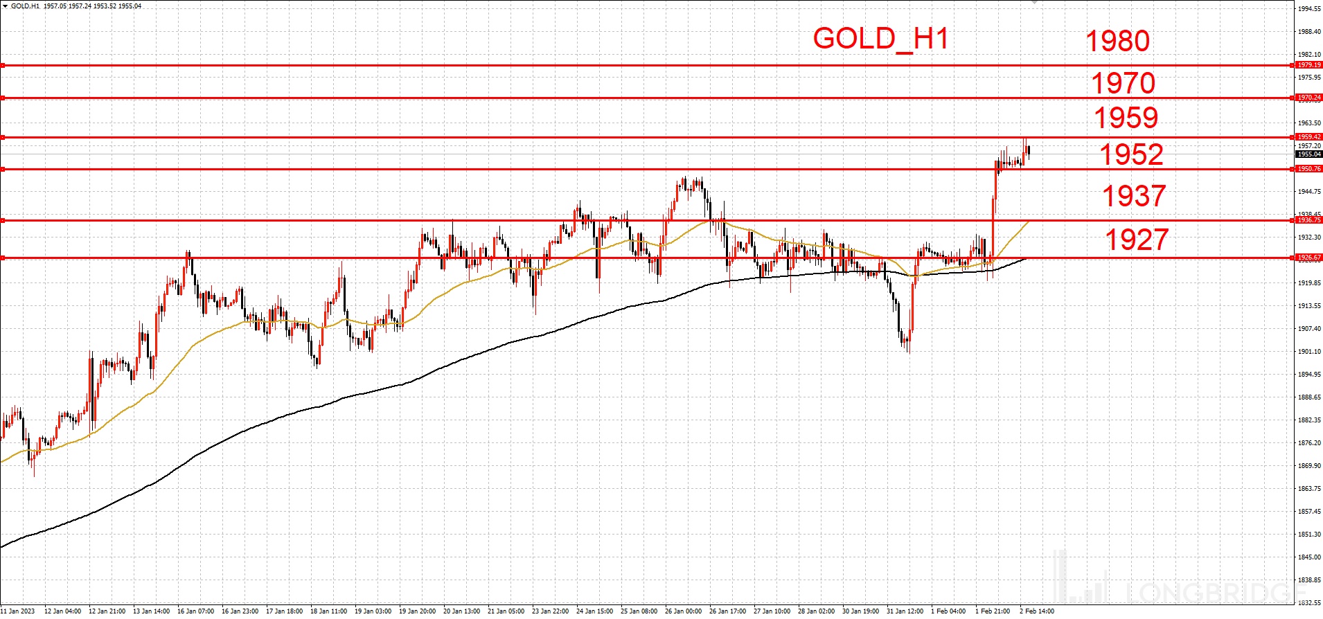 金价周四升至每盎司 1,950 美元上方,创下九个多月以来的最高水平,原因是美国联邦储备委员会在预期中实施了较为温和的 25 个基点加息,而美联储主席鲍威尔表示 “通货紧缩过程已经开始” 鲍威尔补充说,美联储肯定有可能将其基准利率维持在 5% 以下,并且可以在不对经济造成重大损害的情况下将通胀回落至 2%。尽管如此,美国央行仍暗示未来将进一步加息,但鲍威尔的言论点燃了人们对这一紧缩周期可能接近尾声的希望。