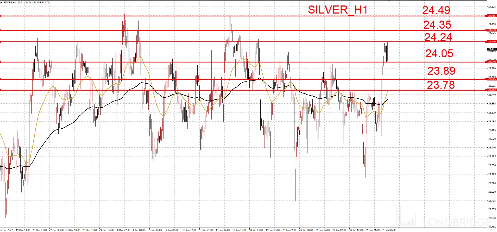下方支撑 : 24.05 / 23.89 / 23.78 美元/盎司