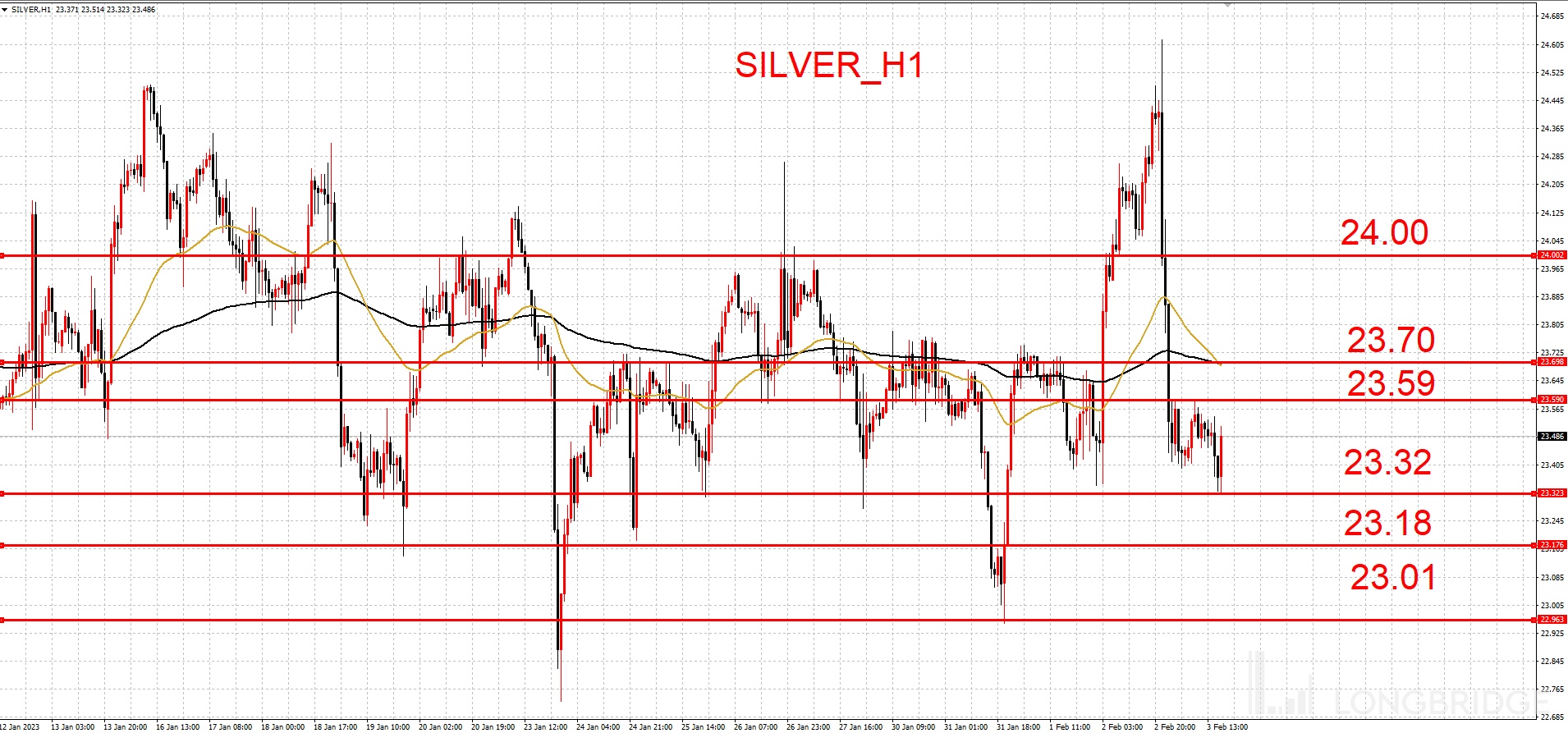 下方支撑 : 23.32 / 23.18 / 23.01 美元/盎司