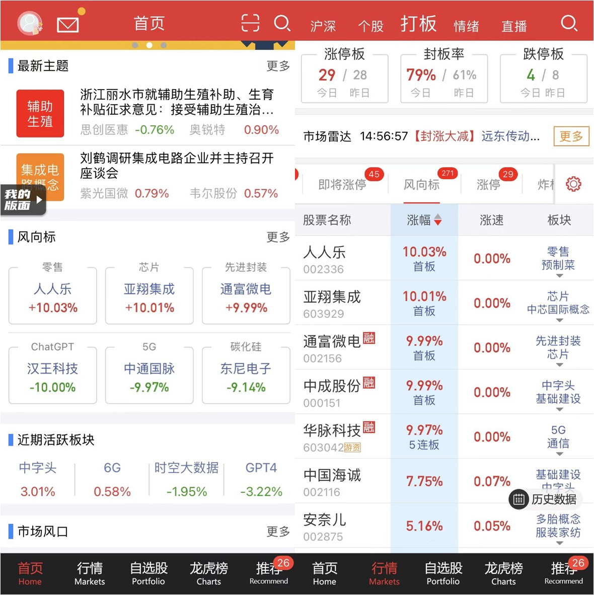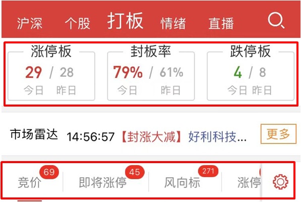 在【行情】里的【打板】页面,我们会对市场整体的情况进行展示,其中包括当日的涨停板、封板率、跌停板等,通过以上数据即可迅速感受到当天市场的好坏。