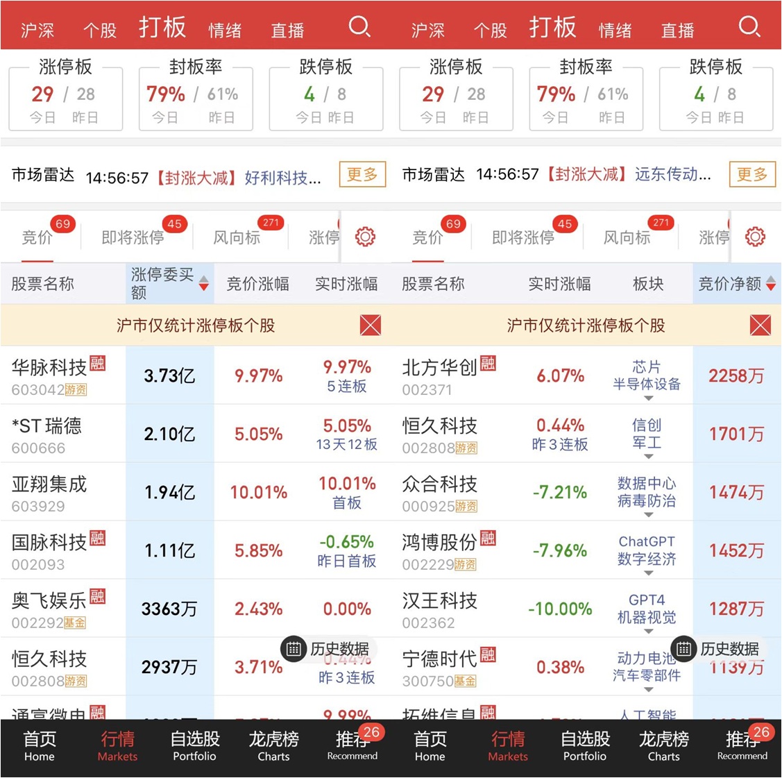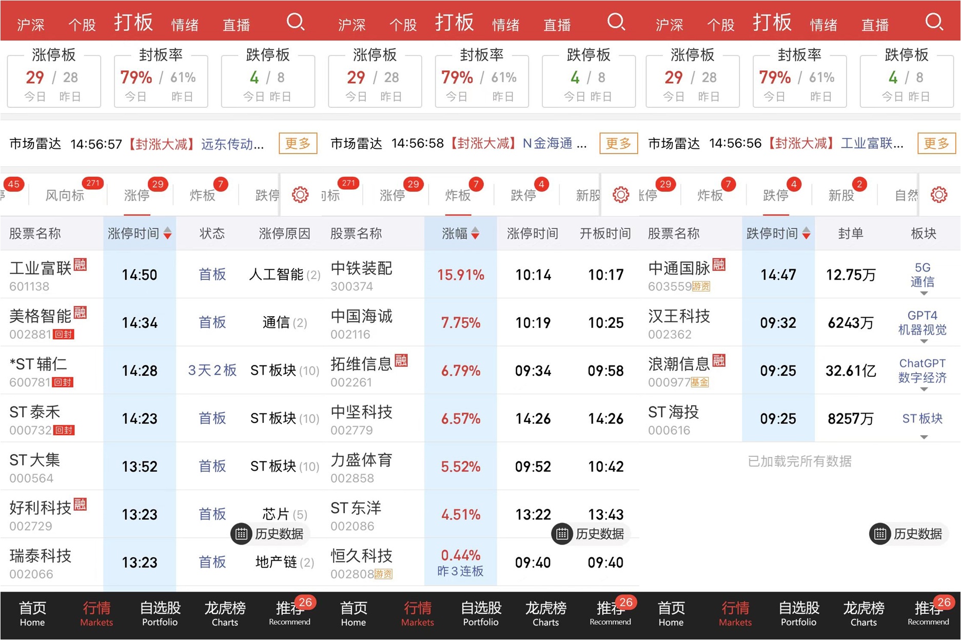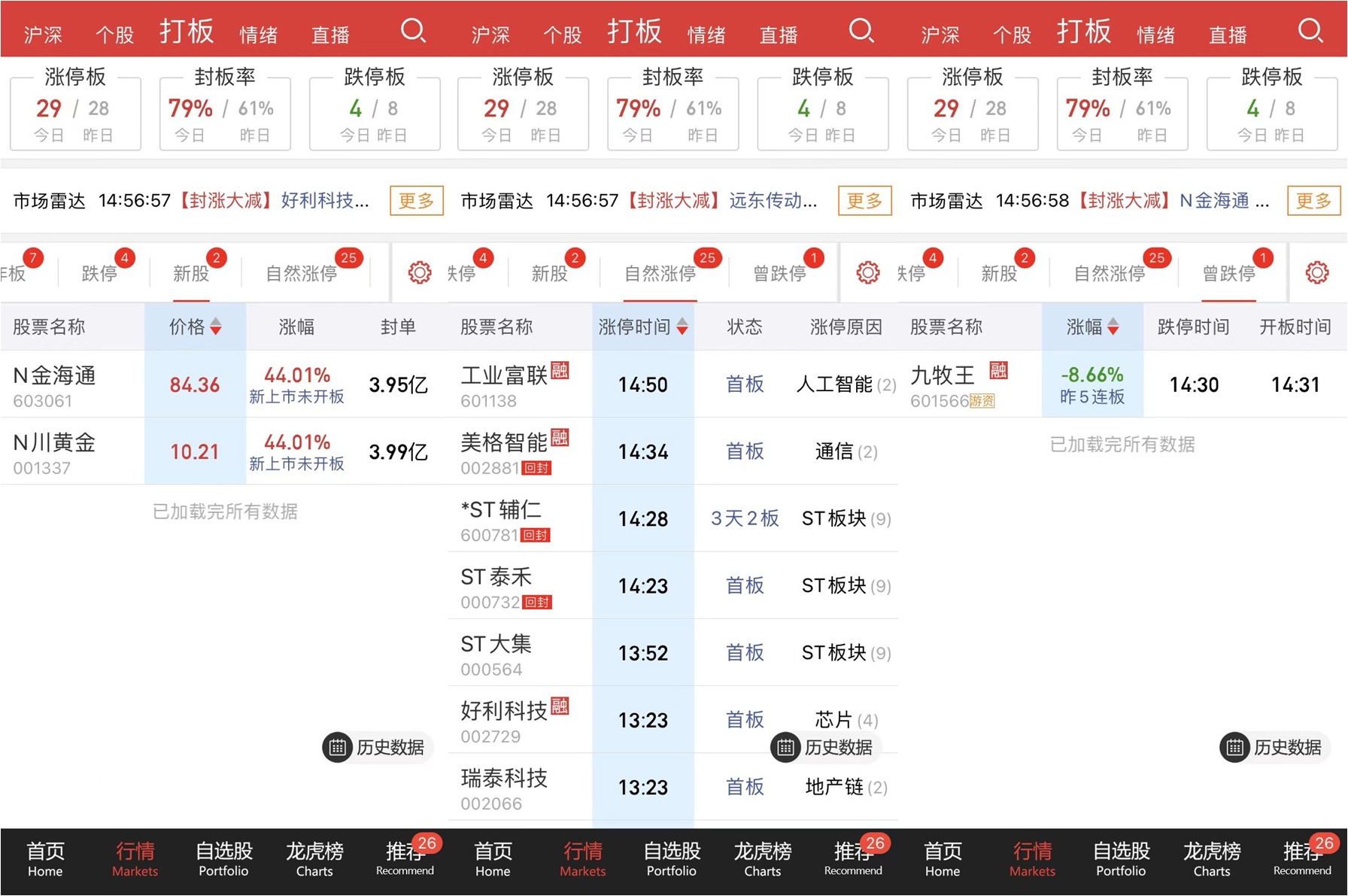 其他功能还有涨停、炸板、跌停、新股等等,我们接着往下看: