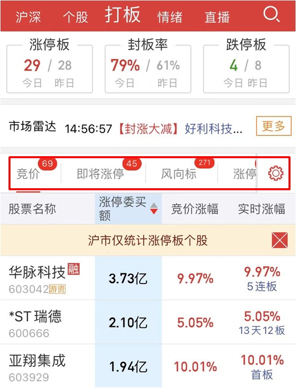 另外还会根据个股的状态属性进行分门别类,不管是竞价阶段,还是盘中时间,想看市场风向标,还是想查看即将涨停个股,都能从打板页面获取,作为短线选手,时间就是金钱,这里不仅能帮你提高看盘效率,还能为你减少盘中不必要的时间。