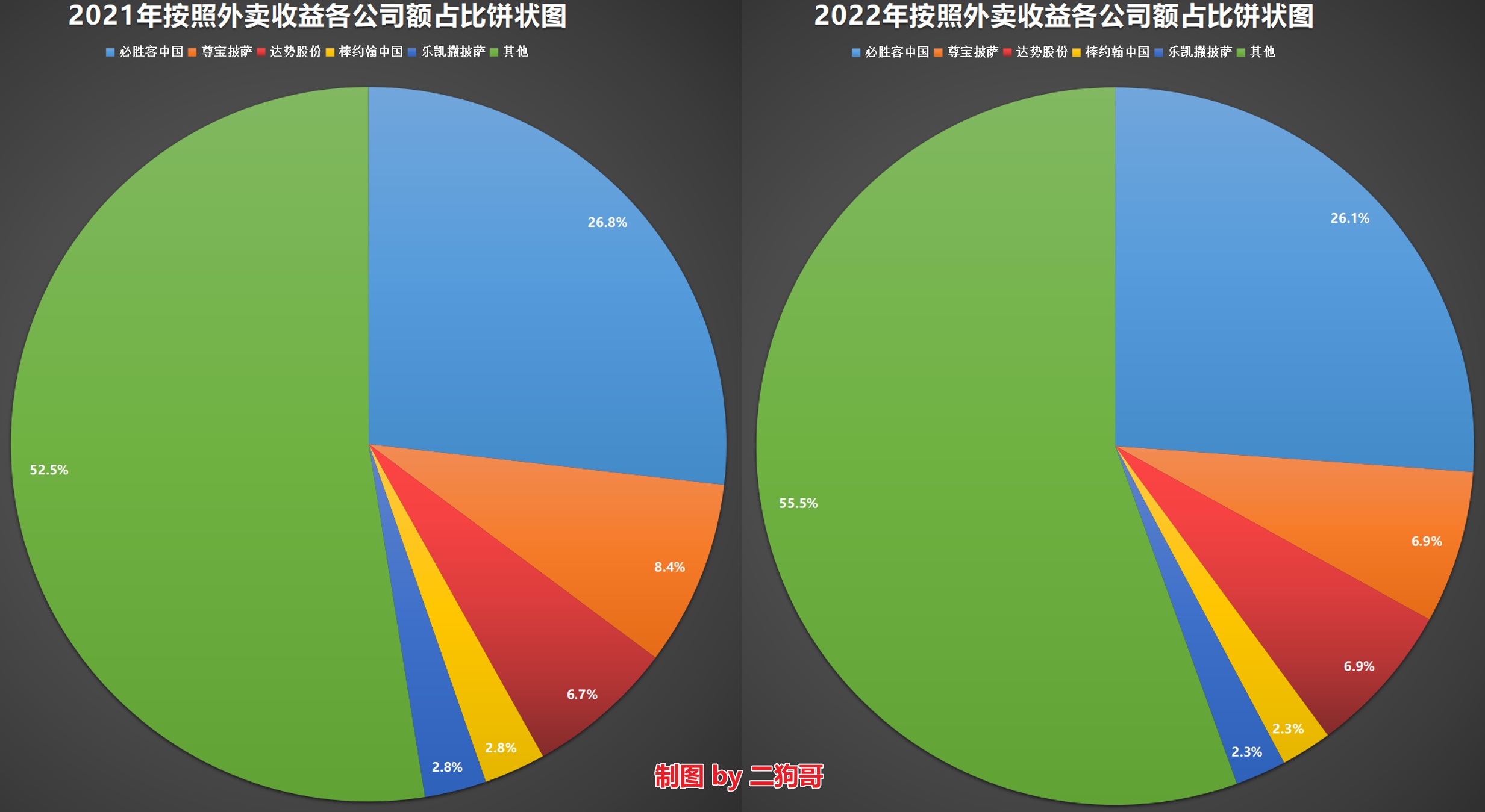 按照 2021 年外卖销售额计,公司依然是中国的第三大披萨餐饮公司,市场份额为 6.7%。市场排名第一和第二的分别是必胜客和尊宝披萨,市场份额分别为 26.8% 和 8.4%