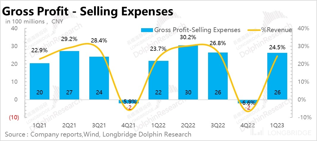 At the same time, the increase in on-sale cash provided the company with more interest income, so the performance in terms of profit is far better than that of revenue. However, looking solely at core profits (gross profit - sales expenses), the growth rate was slightly faster than revenue, albeit slower than before.