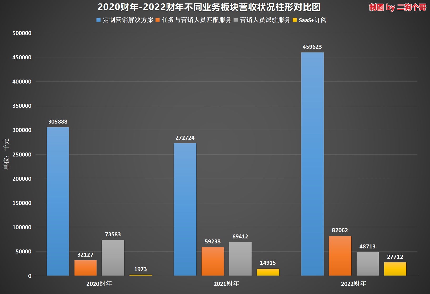 - 任务与营销人员匹配服务。为客户的商品制定并实施标准化的销售及营销活动,通过分析营销人员的历史任务绩效,以确定其优势及特征,并提供任务与合适的营销人员的匹配推荐建议。该业务于业绩记录期各年分别占总营收的 7.7%、14.2% 及 13.3%。