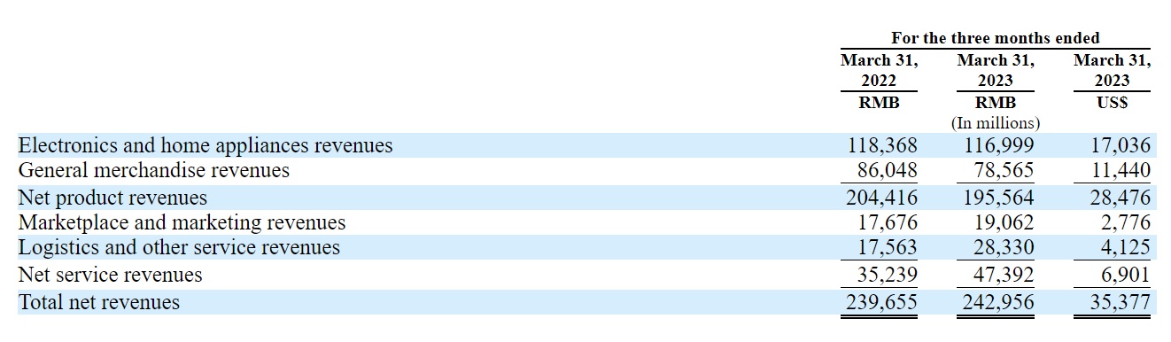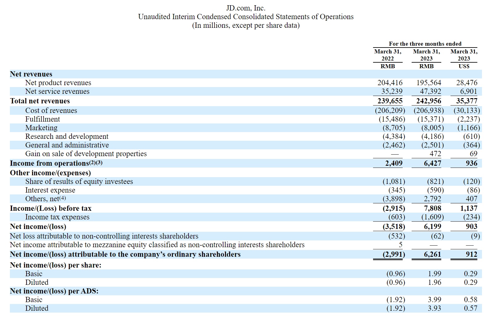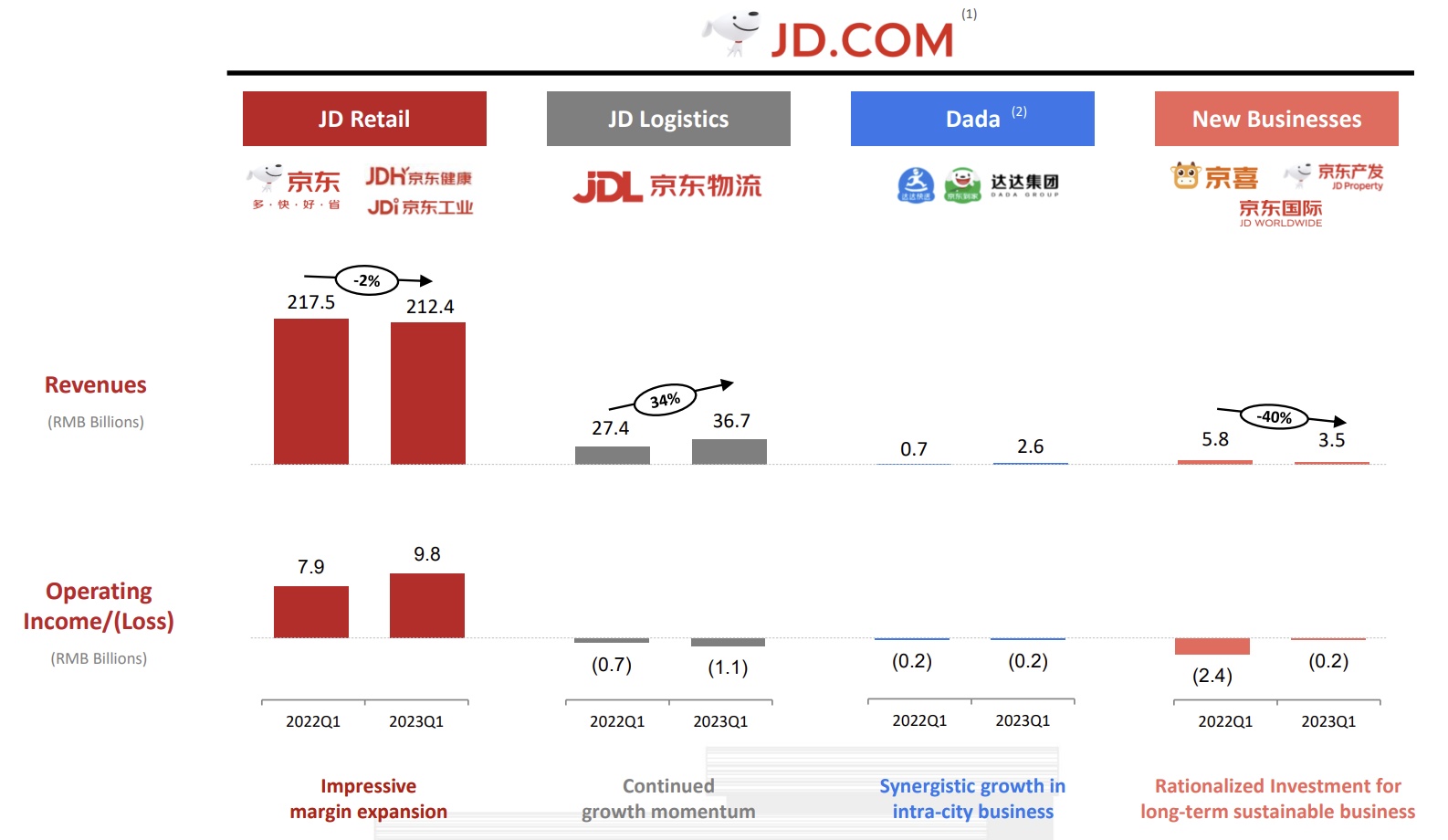 京东集团于 2023 年 5 月 11 日公布了 2023 年 Q1 季度财报。