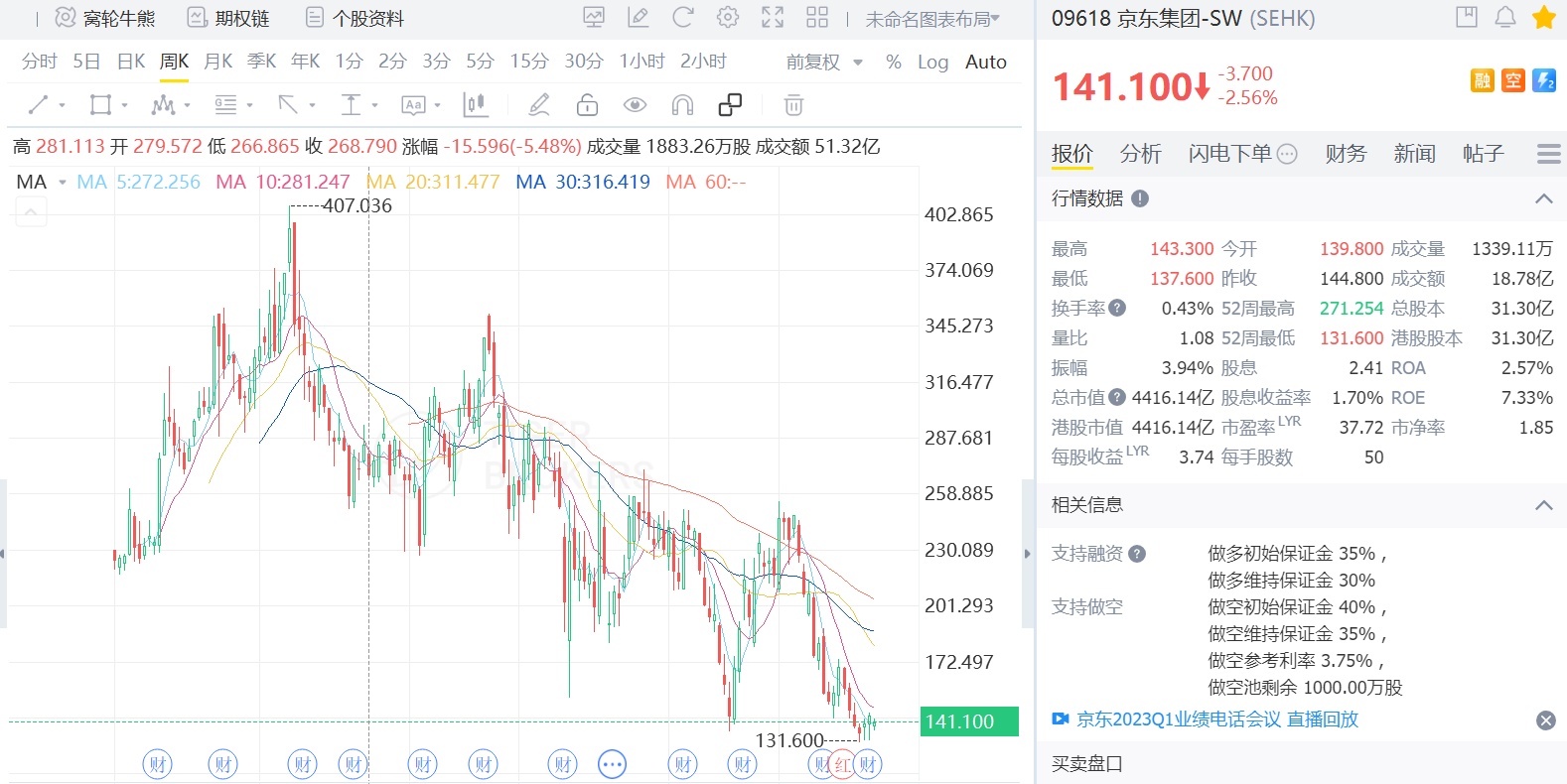 在季度财报发布前,京东港股创下了 52 周新低每股港币 131.6 元,同样也是京东香港上市以来的新低,无论是目前跌跌不休的京东股价,还是刚发布的季度财报,京东似乎都充满了吸引力。