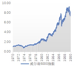 美股大牛市带动资金流入股票基金,1970-1990年,覆盖大多数美股的威尔逊5000指数由1.0点涨至8.2点,二十年复合增长率11.2%,长期投资价值突出,1984-1990年净资金流入达577亿美元;