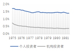 1975《证券法修正案》颁布后,机构投资者首先享受到佣金率大幅下降的红利,仅5年后,机构平均每股佣金就由法令发布前的25.3美分迅速降至12.2美分,佣金率由0.64%降至0.39%。
